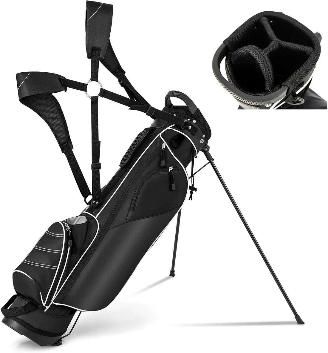 Quality cushioning on both straps that distributes bag weight across shoulders and back preventing pressure points and pain during extended carrying, so you're not dealing with thin straps that dig in. Just comfortable design that makes walking 18 holes pleasant instead of painful endurance test.